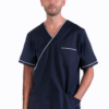 Lång rock i rak unisexmodell. Lång ärm, ok fram och bak, två stora fickor, en bröstficka samt slejf med två knappar baktill. Rocken finns också i kort modell 5501K.