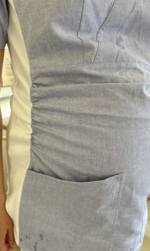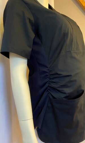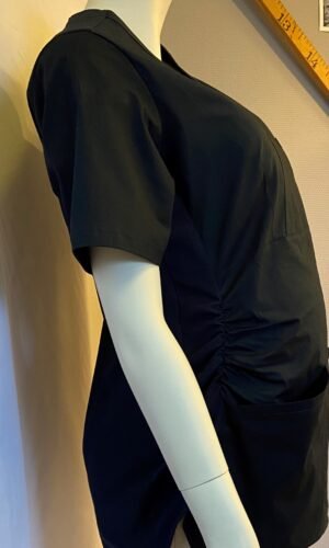 En av våra vanliga tunikor Julia 5637 är här omgjord till mammatunika. Tunikan växer sakta med dig! Utmed sidorna finns skön mjuk mudd. De stora fickorna finns kvar på standardmodellen men kan du själv kan välja om man vill ha dem eller inte.
