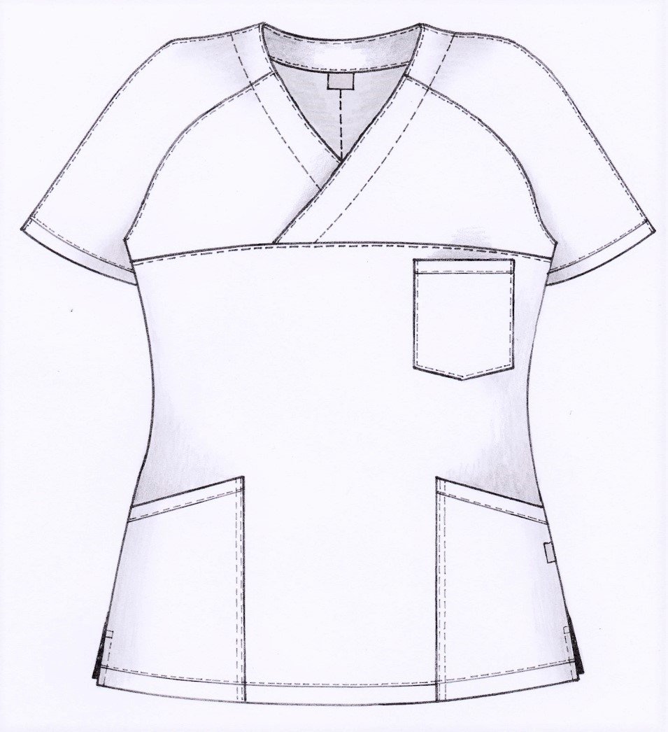 OP-tunika med kort raglanärm. Figursydd med bröstficka och två stora fickor samt sidsprund.