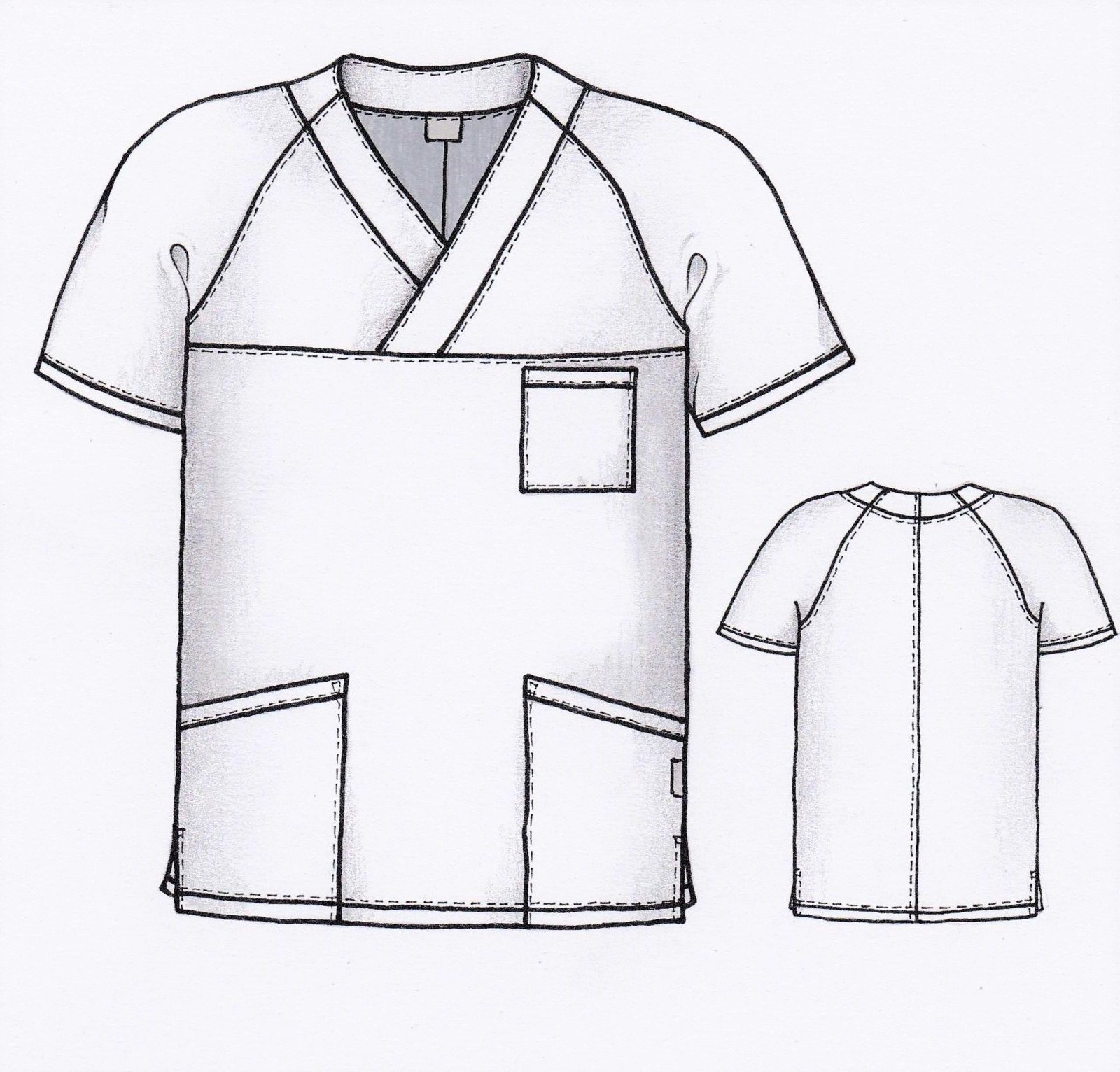 OP-skjorta med kort raglanärm. Rak modell med bröstficka och två stora fickor samt sidsprund.