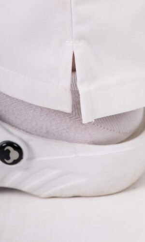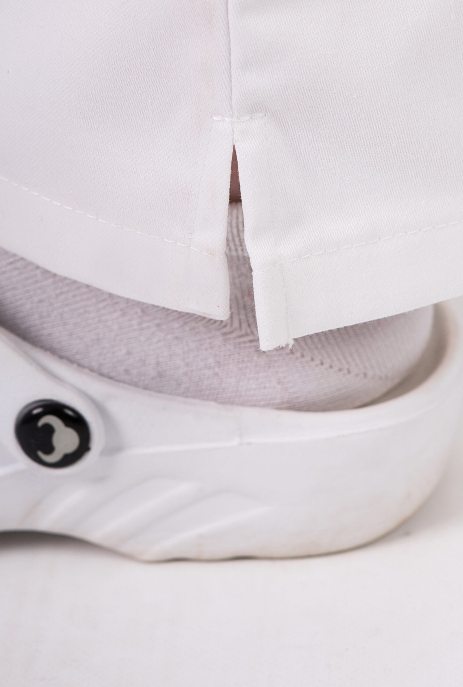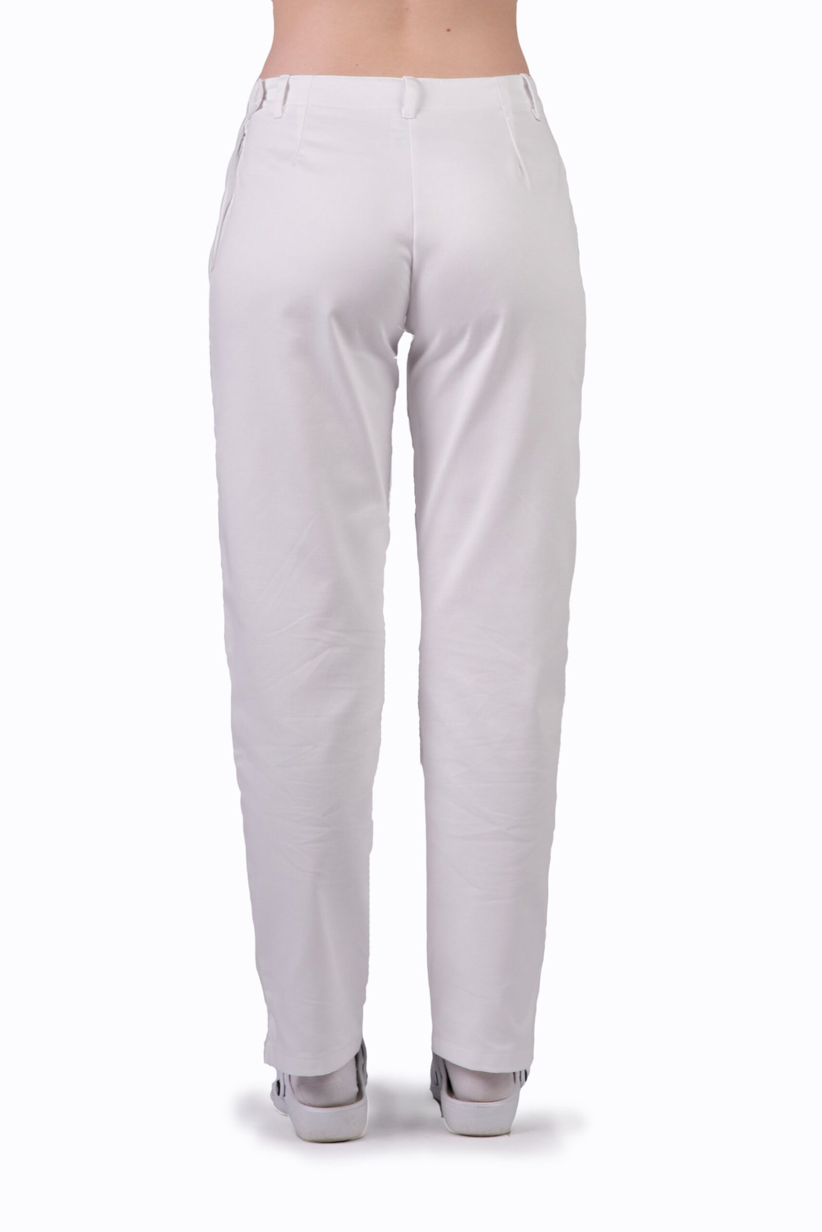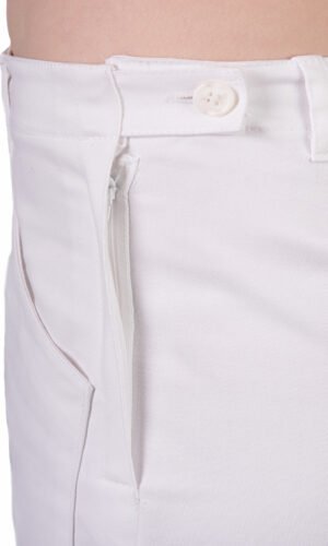 Byxa i smal modell. Dragkedja i sidan och stora framfickor. Hällor. Aning kortare modell med sprund nertill och smal fotvidd.