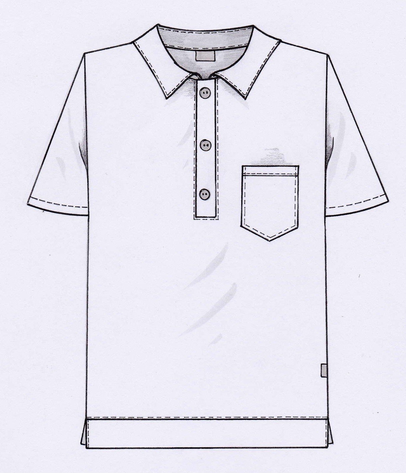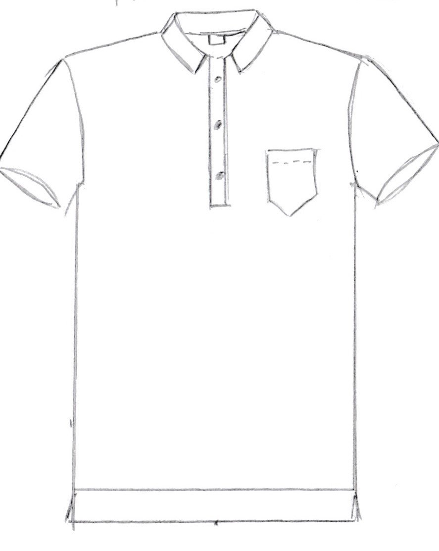 Herrbussarong i rak modell med krage och knappslå fram samt bröstficka. Avslutas nertill med en 5 cm bred kant samt sprund i sidan.