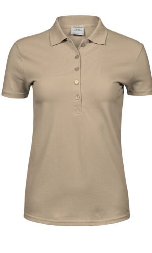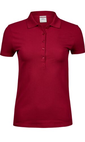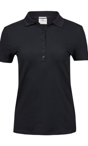 Bildordning: Den ultimata pikén! Tyget är en blandning av bomull med 5% elastan, vilket ger maximal komfort och perfekt passform. Metervaran är en minipiké och den flatstickade kragen med lycra, gör detta till en klar favorit. TIPS! Tröjan är liten i storlekarna. Gå gärna upp en storlek mot vad du normalt brukar ha!. Undrar du över Tee Jays storlekar på de olika plaggen? Ring oss så hjälper vid dig: 031-814511. LADIES LUXURY STRETCH POLO DAM