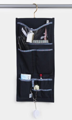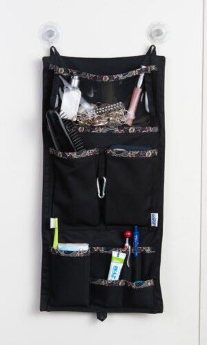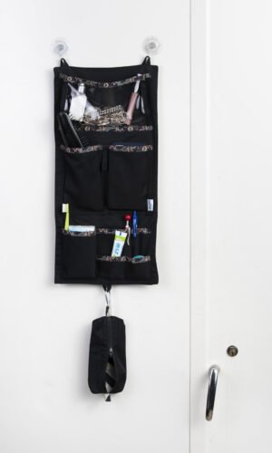 Prylfacket hängs lätt upp på insidan av din skåpsdörr med sugproppar. Har man inget skåp utan bara krokar så väljer man facket med galge istället.