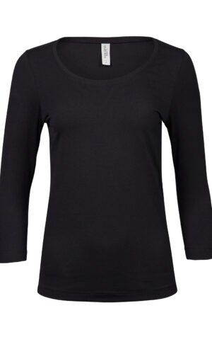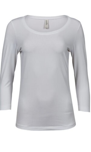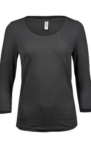 Artikeln på utgående i färg Ligth Blue. Säljes så länge lager finnes. En klassisk stretch T-shirt med 3/4 ärm. Passar lika bra till vardags som under en kavaj på jobb. Storlekarna är små, välj en storlek större. Undrar du över Tee Jays storlekar på de olika plaggen? Ring oss så hjälper vid dig: 031-814511. WOMENS STRETCH 3/4 SLEEVE TEE